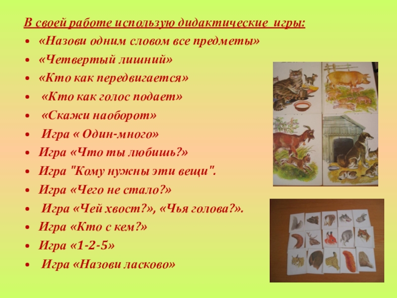 Игра «Рассели животных» Игра «Слово на ладошке»