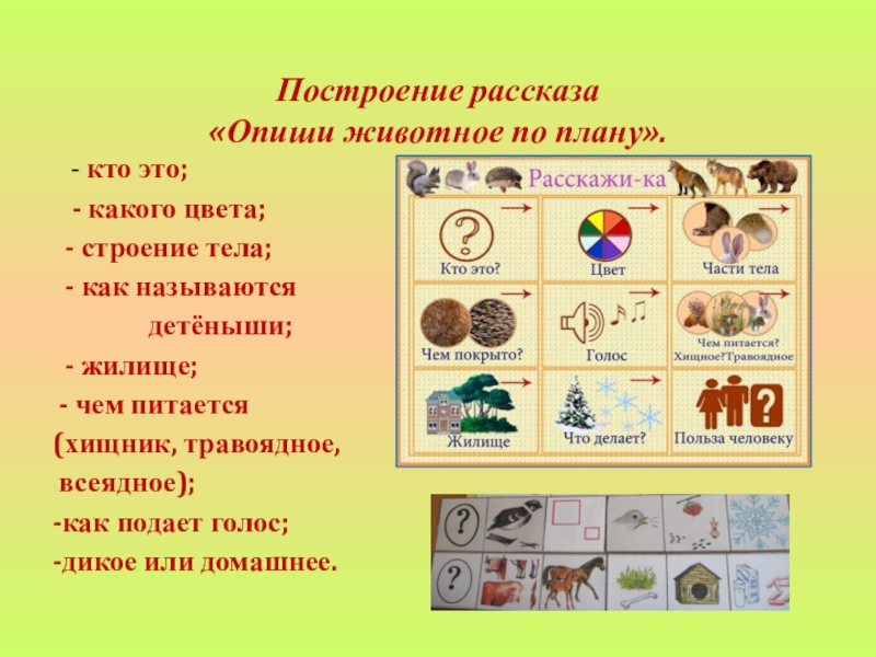 которые значительно облегчают ребенку составление описательного рассказа, является использование наглядных опорных схем. Они заметно упрощают задачи, делают высказывания дошкольника четкими, связными и последовательными.