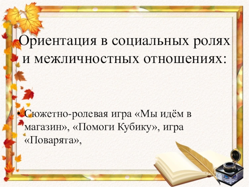 Слайд 8Ориентация в социальных ролях и межличностных отношениях: