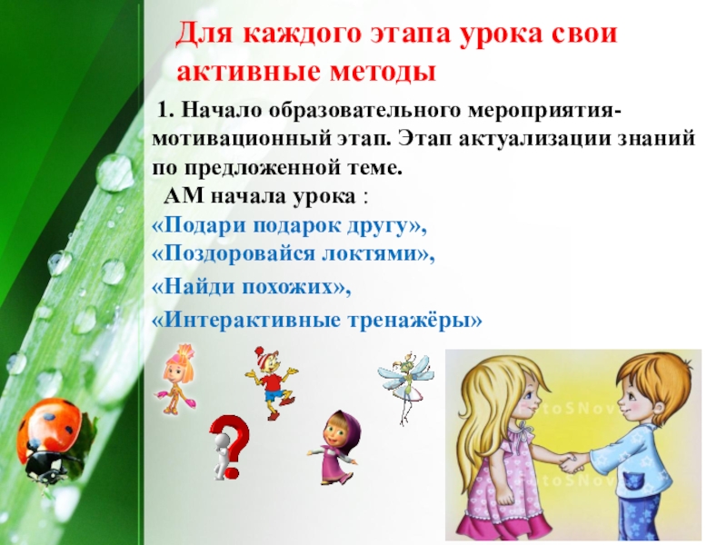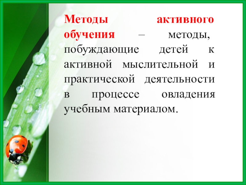 Слайд 7Методы активного обучения – методы, побуждающие детей к активной мыслительной и