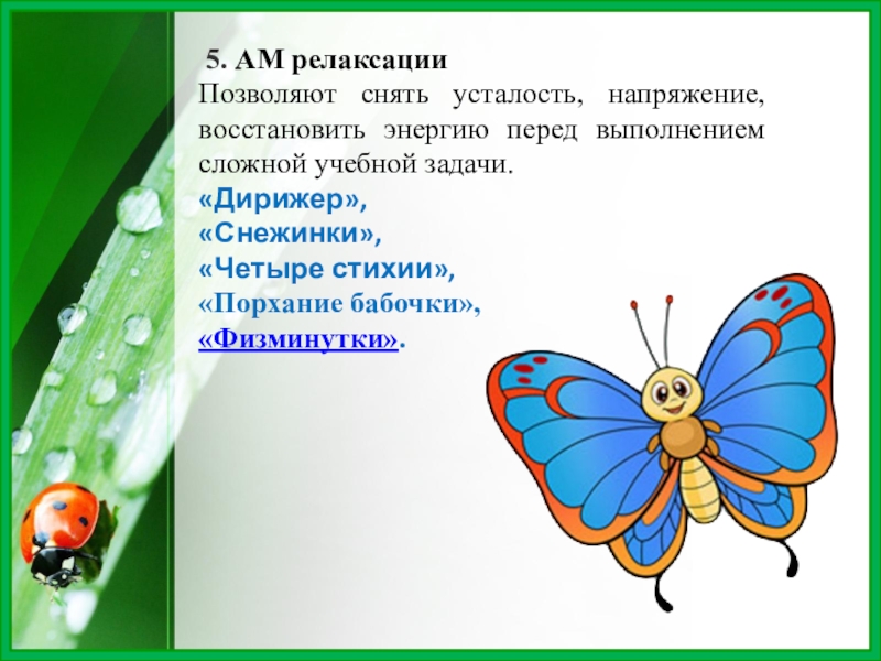 Позволяют снять усталость, напряжение, восстановить энергию перед выполнением