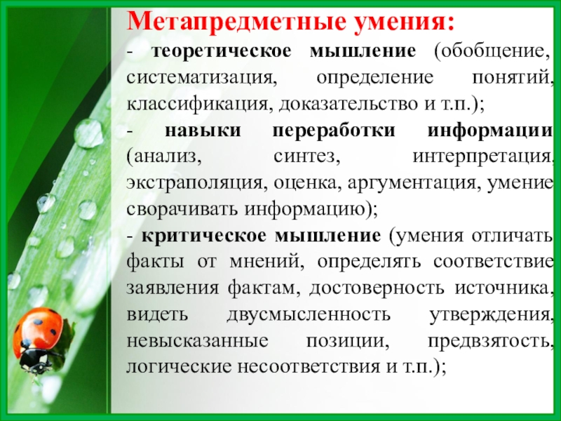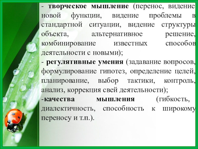 Слайд 5- творческое мышление (перенос, видение новой функции, видение проблемы в стандартной