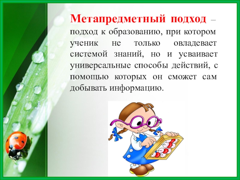 Слайд 3Метапредметный подход – подход к образованию, при котором ученик не только