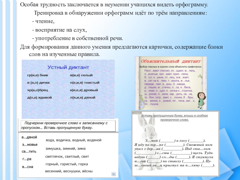 Особая трудность заключается в неумении учащихся видеть орфограмму.