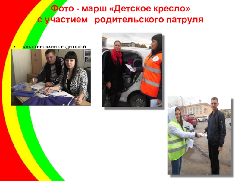 Фото - марш «Детское кресло»  с участием  родительского патруля АНКЕТИРОВАНИЕ РОДИТЕЛЕЙ
