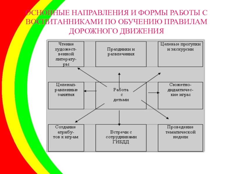 Слайд 6ОСНОВНЫЕ НАПРАВЛЕНИЯ И ФОРМЫ РАБОТЫ С ВОСПИТАННИКАМИ ПО ОБУЧЕНИЮ ПРАВИЛАМ ДОРОЖНОГО