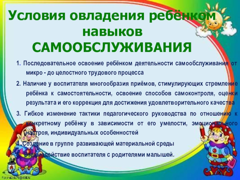 Приемы по развитию навыка самообслуживания у детей раннего возраста: