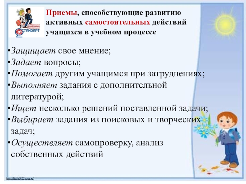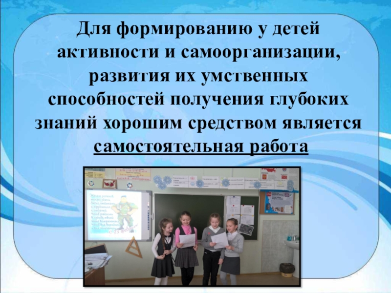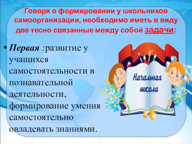 Первая :развитие у учащихся самостоятельности в познавательной деятельности, формирование умения самостоятельно овладевать знаниями.