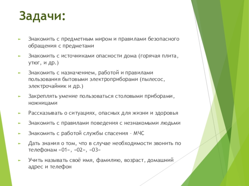 Предметы, которые в зависимости от возраста детей, нужно научить правильно обращаться (иголки, ножницы, нож);