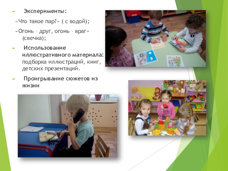 Предметы, которыми категорически запрещается пользоваться (спичками, газовые плиты, печка, электрические розетки, включённые электроприборы и т.п.);