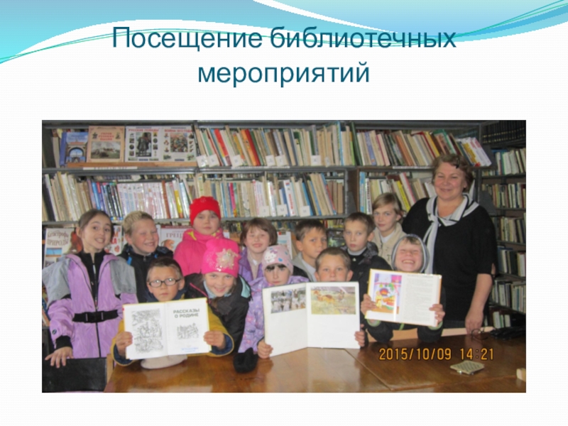 Слайд 47Посещение библиотечных мероприятий