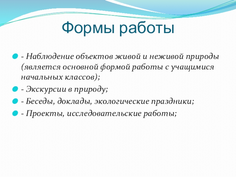 - Наблюдение объектов живой и неживой природы (является основной формой