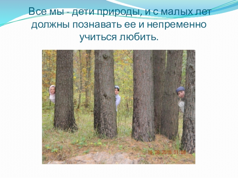 Слайд 3 Все мы - дети природы, и с малых лет должны
