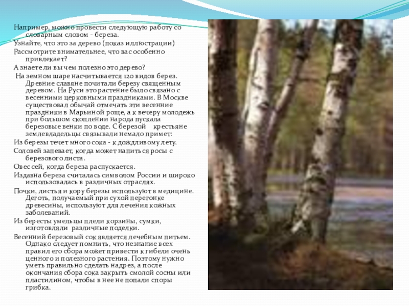 Слайд 24Например, можно провести следующую работу со словарным словом - береза.