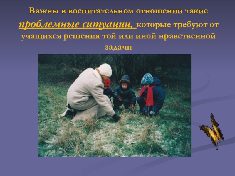 Слайд 10Важны в воспитательном отношении такие проблемные ситуации, которые требуют от учащихся