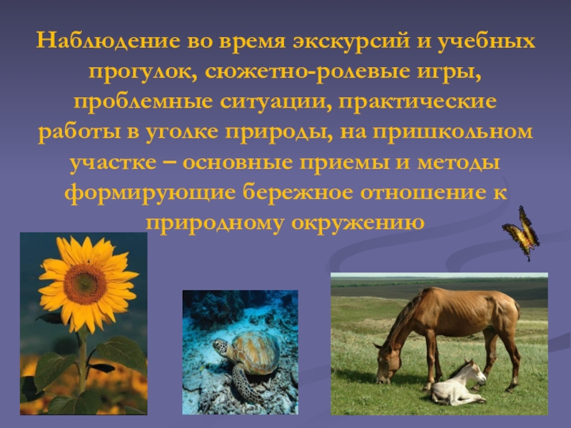 природоохранного направления, организованные через практические и поисковые ситуации, по выбору действия, на сравнение и оценивание положительных действий, осуждение негативных действий, беседа об их последствиях о жизни животных, людей, растений, для неживой природы, состояние природной среды