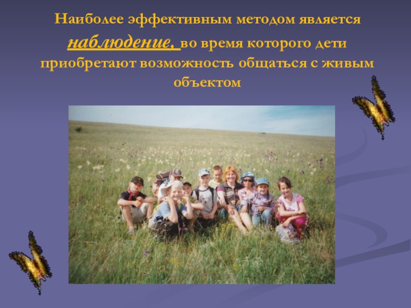 Слайд 11Наиболее эффективным методом является наблюдение, во время которого дети приобретают возможность