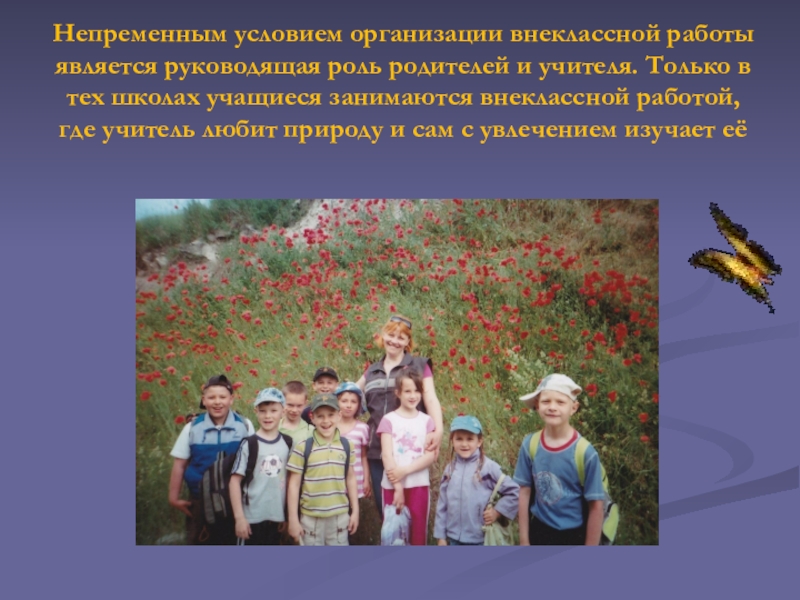 Слайд 16Непременным условием организации внеклассной работы является руководящая роль родителей и учителя.