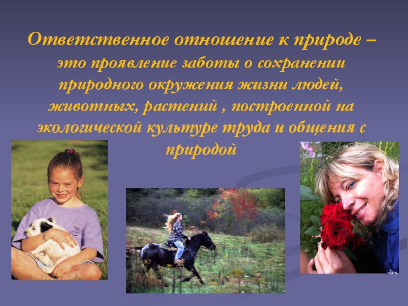 Слайд 3Ответственное отношение к природе – это проявление заботы о сохранении природного