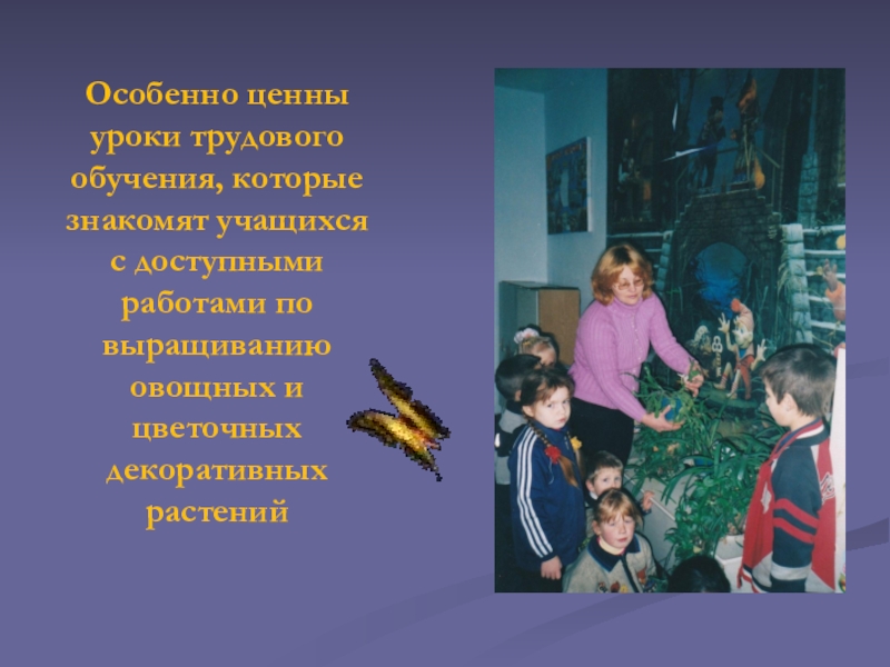 Слайд 14Особенно ценны уроки трудового обучения, которые знакомят учащихся с доступными работами