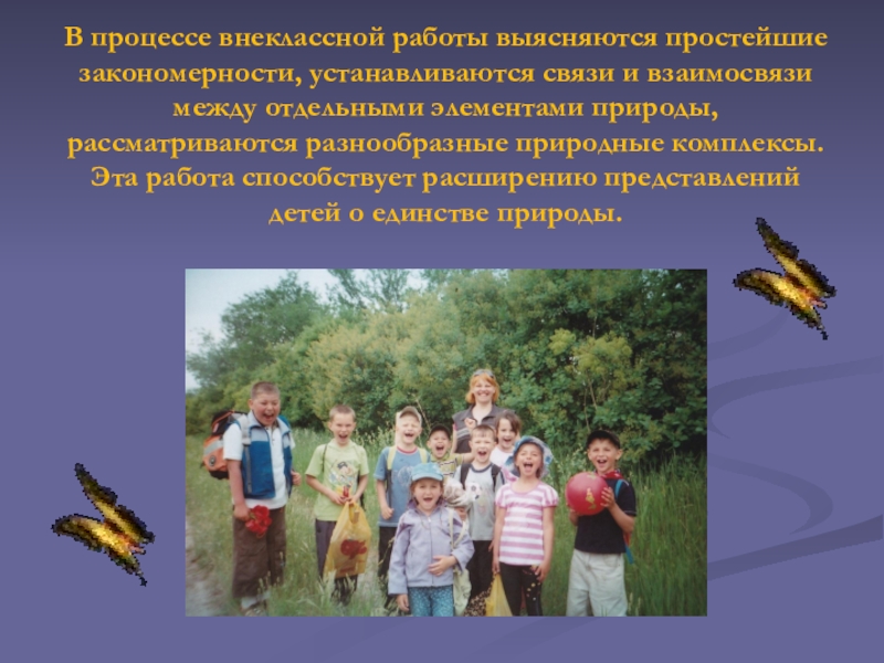 Слайд 15В процессе внеклассной работы выясняются простейшие закономерности, устанавливаются связи и взаимосвязи