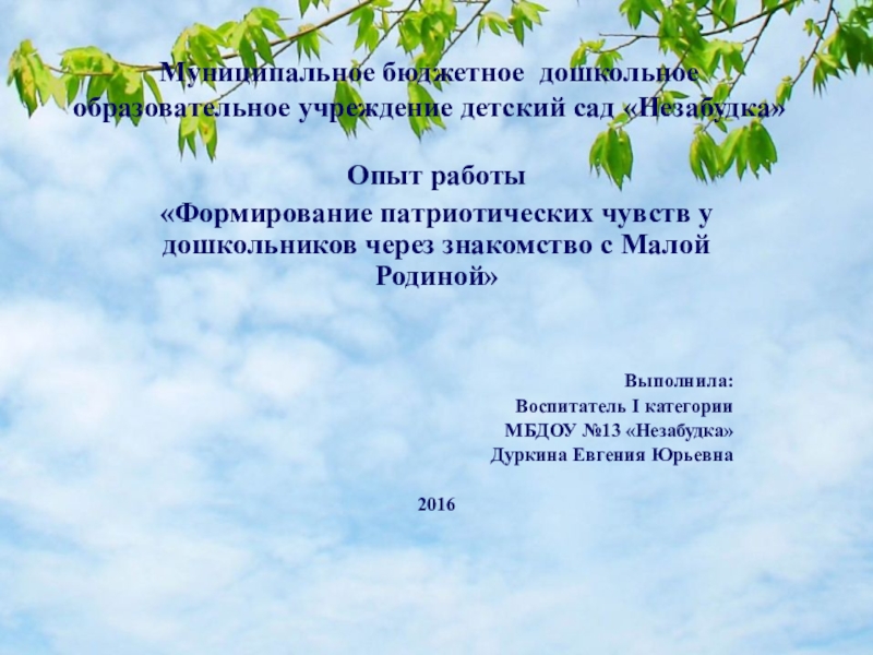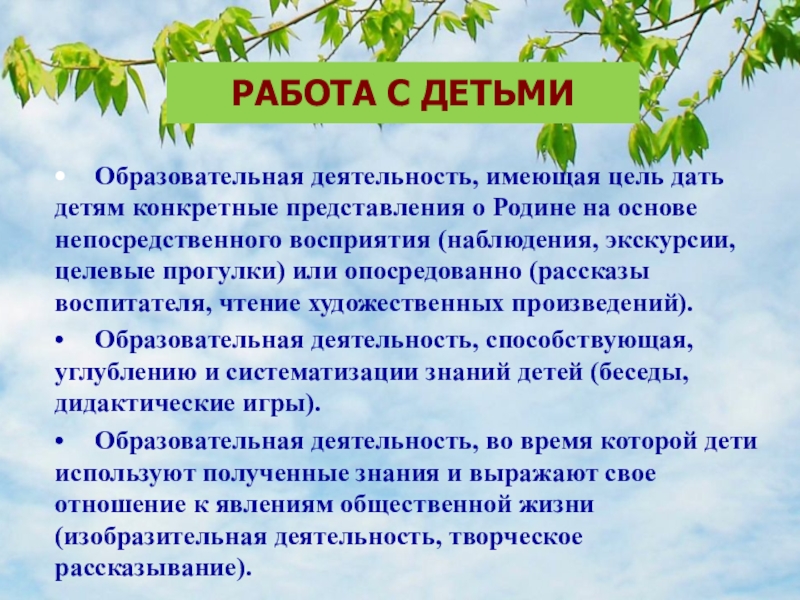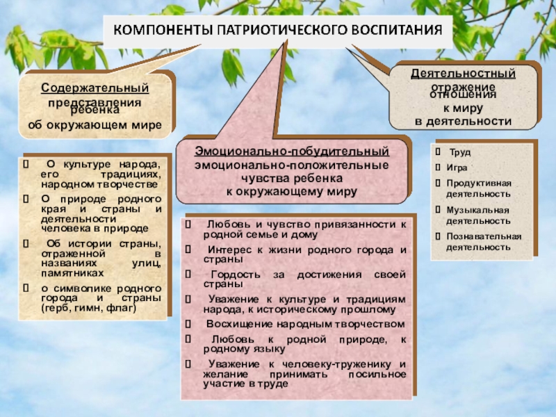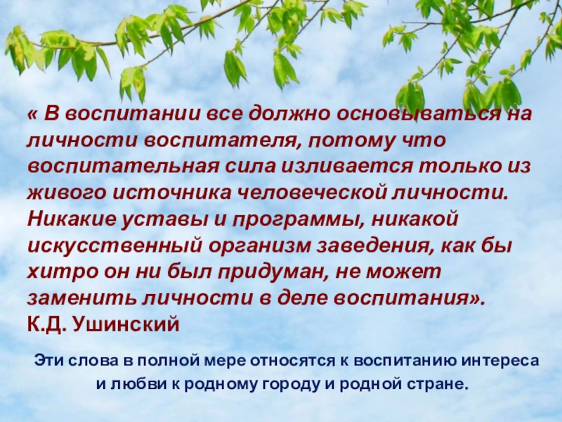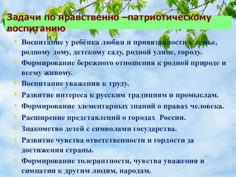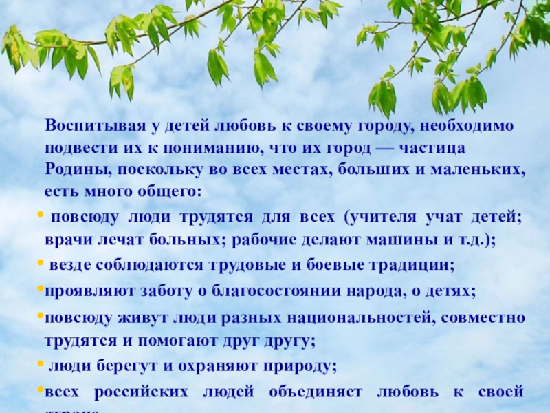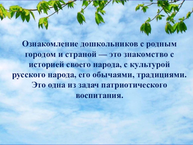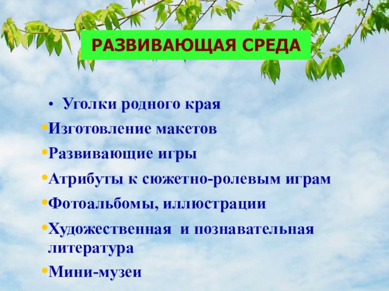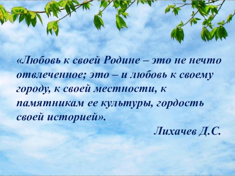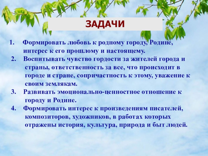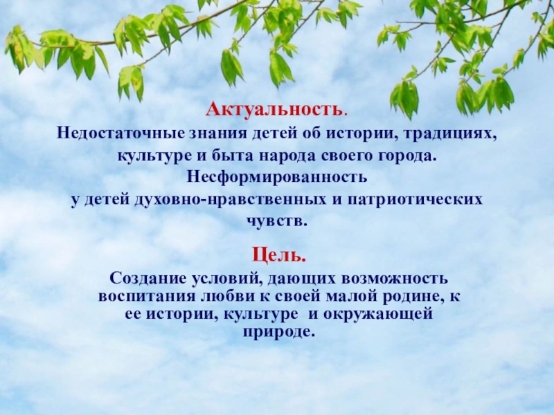 Создание условий, дающих возможность воспитания любви к своей малой родине, к ее истории, культуре и окружающей природе.