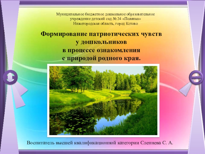 Воспитатель высшей квалификационной категории Слепнева С. А.