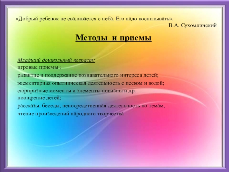Слайд 10«Добрый ребенок не сваливается с неба. Его надо воспитывать».