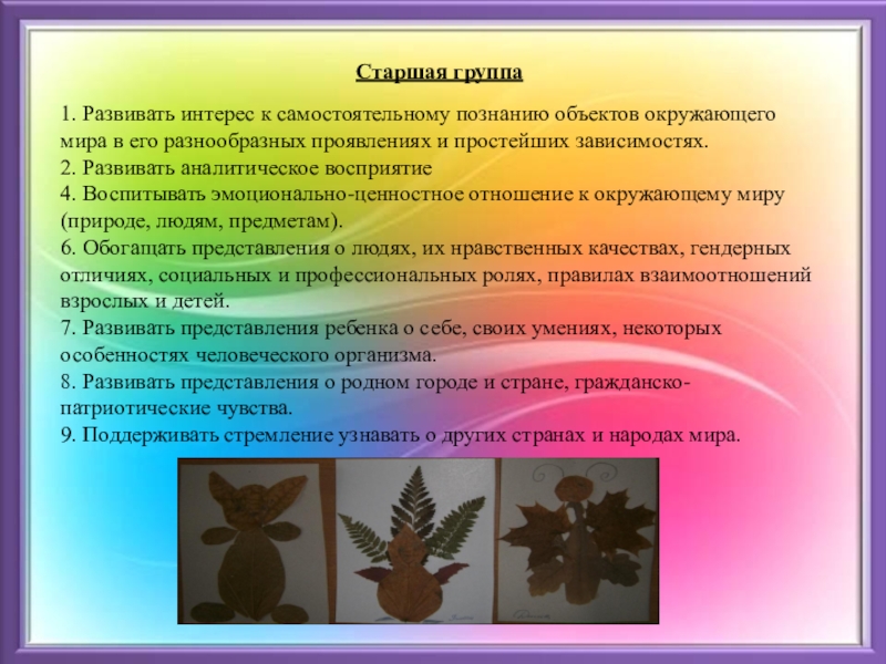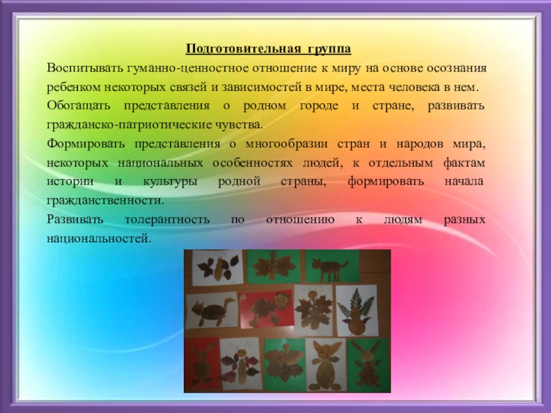 Воспитывать гуманно-ценностное отношение к миру на основе осознания ребенком некоторых