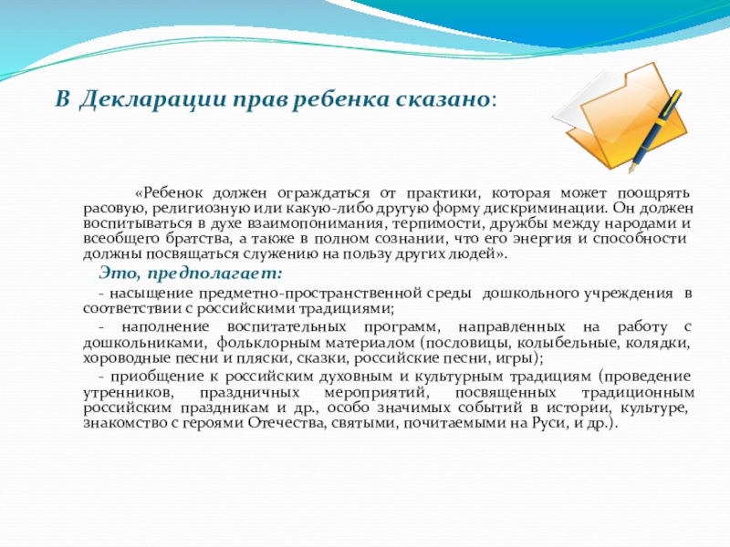 Слайд 9В Декларации прав ребенка сказано: