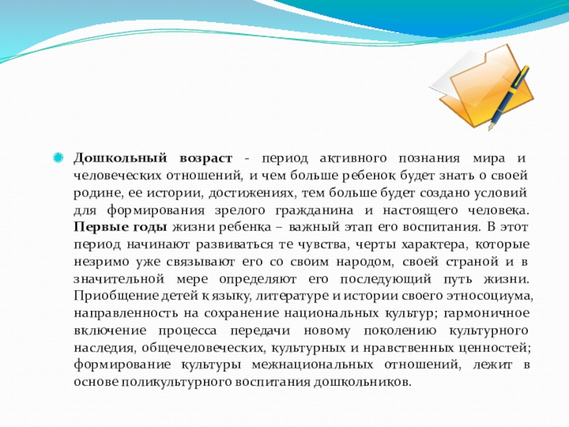 Слайд 3Дошкольный возраст - период активного познания мира и человеческих отношений, и