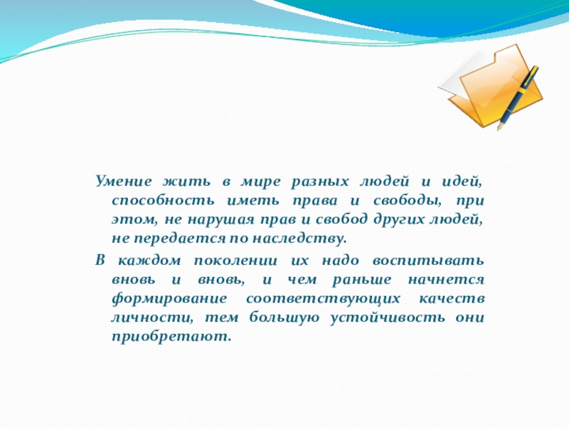 Умение жить в мире разных людей и идей, способность