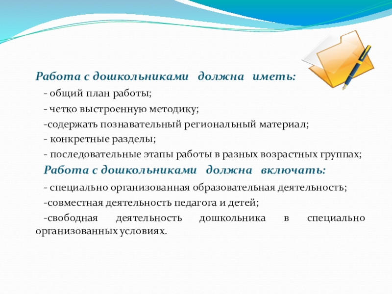 Слайд 12 Работа с дошкольниками должна иметь: