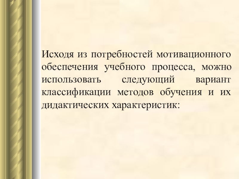классификации методов обучения и их дидактических характеристик: