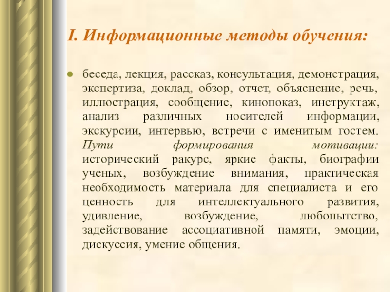 Слайд 35I. Информационные методы обучения:
