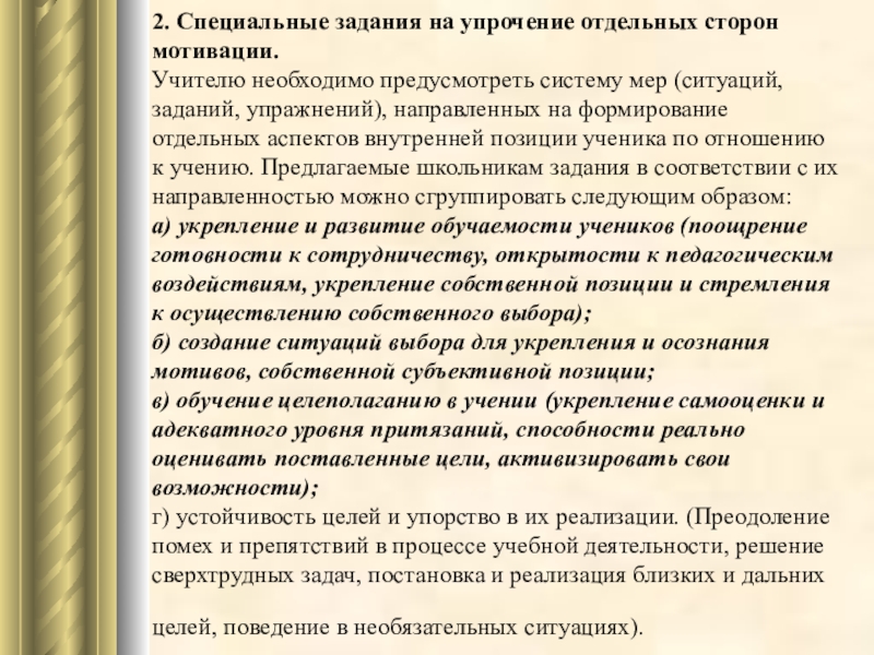Слайд 312. Специальные задания на упрочение отдельных сторон мотивации.