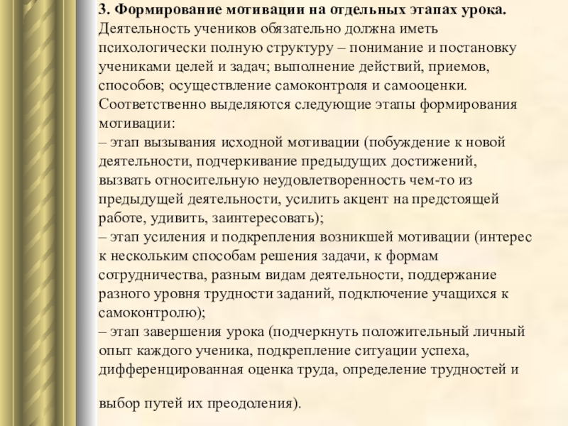 Слайд 323. Формирование мотивации на отдельных этапах урока.