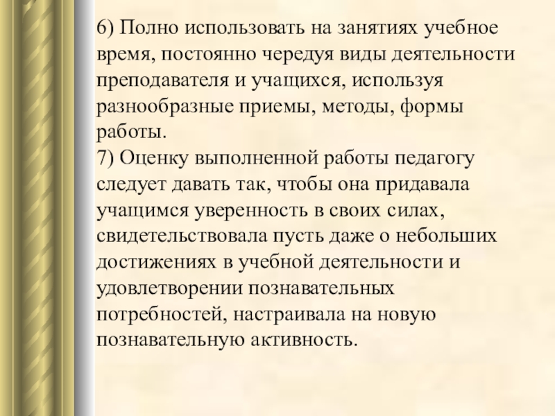 Слайд 266) Полно использовать на занятиях учебное время, постоянно чередуя виды деятельности