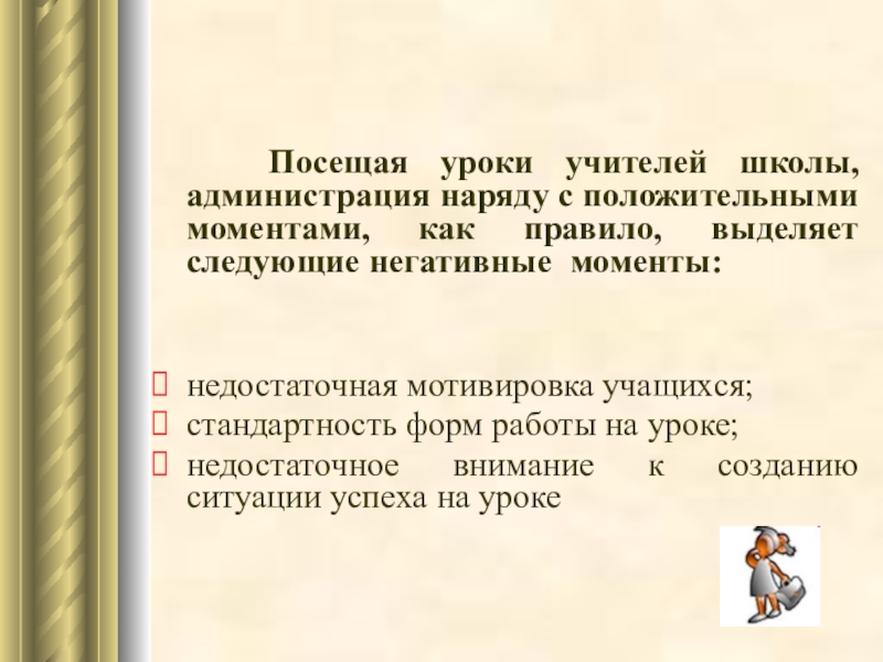 Посещая уроки учителей школы, администрация наряду с положительными моментами,
