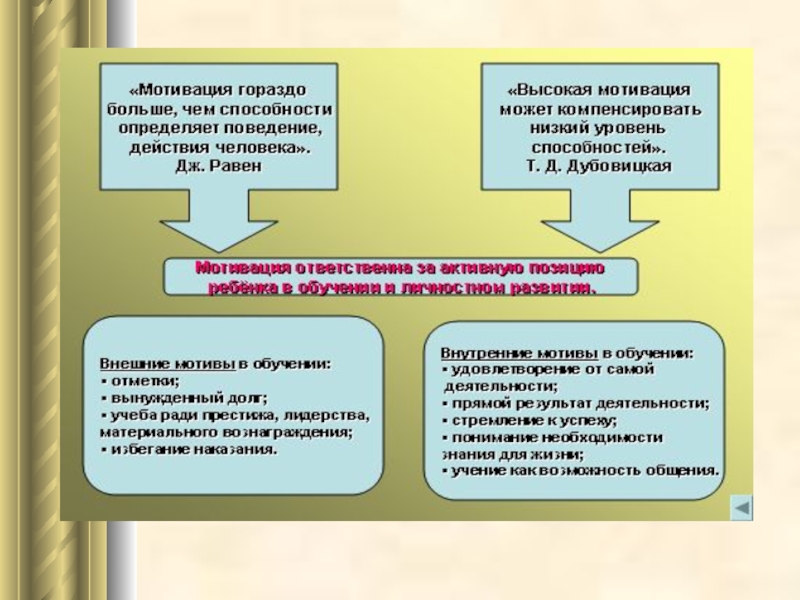 Мотивация является особо важным и специфическим компонентом учебной