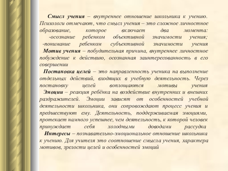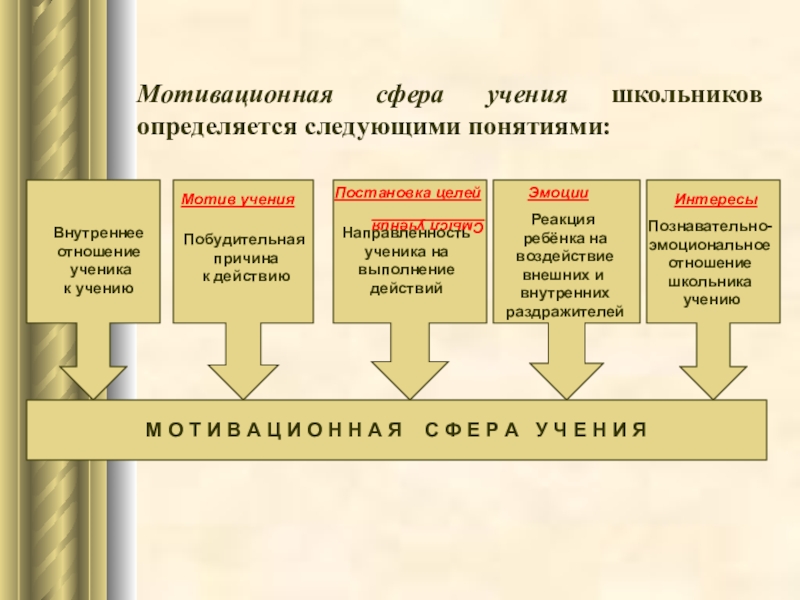 Мотивационная сфера учения школьников определяется следующими понятиями: