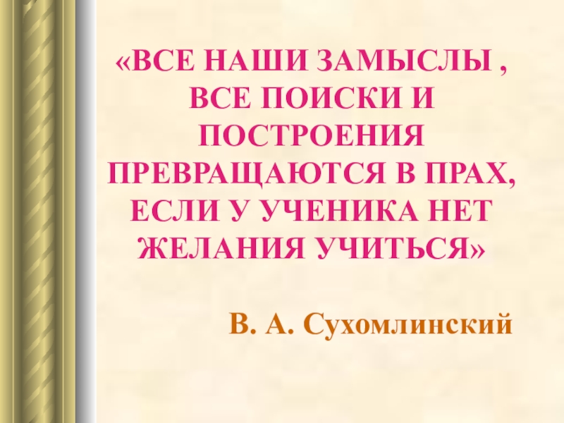 Слайд 2«ВСЕ НАШИ ЗАМЫСЛЫ , ВСЕ ПОИСКИ И ПОСТРОЕНИЯ ПРЕВРАЩАЮТСЯ В ПРАХ,