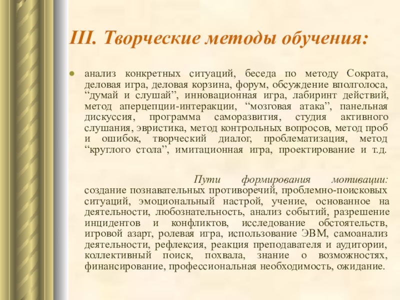 Слайд 37III. Творческие методы обучения: