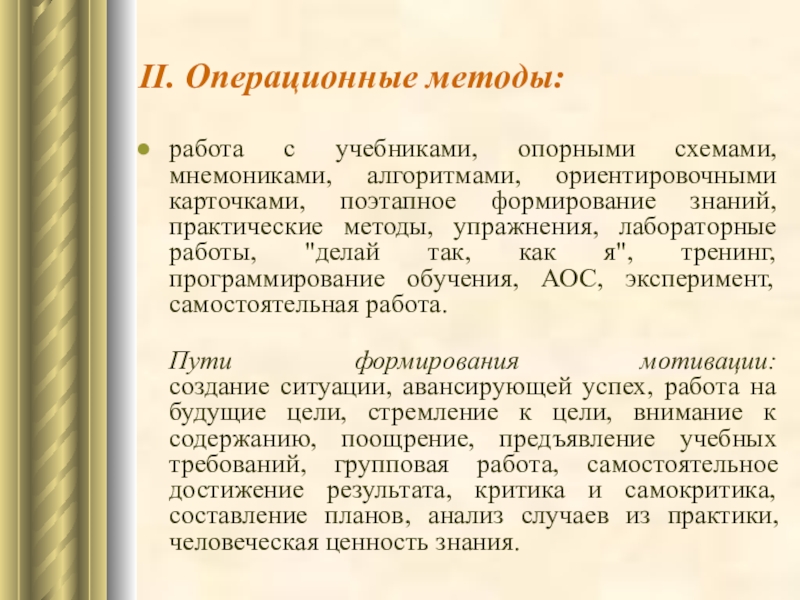 Слайд 36II. Операционные методы: