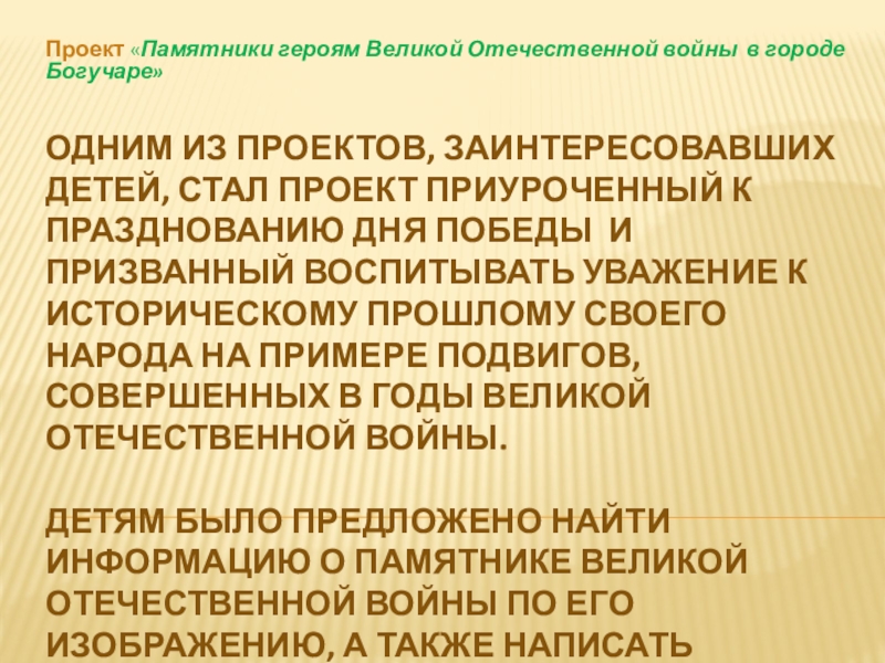 Проект «Памятники героям Великой Отечественной войны в городе Богучаре»