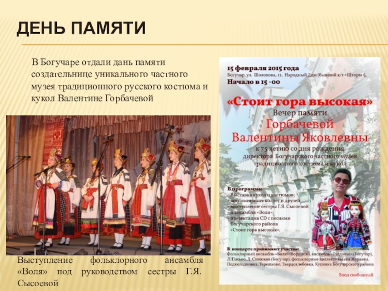 Выступление фольклорного ансамбля «Воля» под руководством сестры Г.Я. Сысоевой
