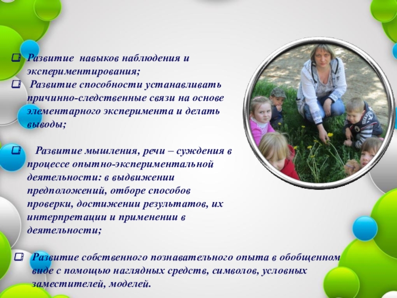 Развитие собственного познавательного опыта в обобщенном виде с помощью наглядных средств, символов, условных заместителей, моделей.
