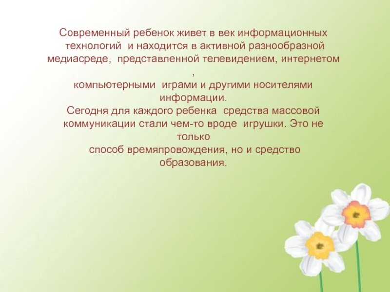 образованием. Компьютеры уже давно стали неотъемлемой частью нашей жизни. Даже в детском саду представить себе работу без них уже невозможно. Никого не удивляет, что многие дети с дошкольного возраста свободно владеют компьютером, для них это еще один источник информации и развития. И педагогам важно помочь ребенку войти в мир новых технологий. Видеоролики позволяют стимулировать познавательную активность детей и дают возможность участвовать в освоении новых знаний.