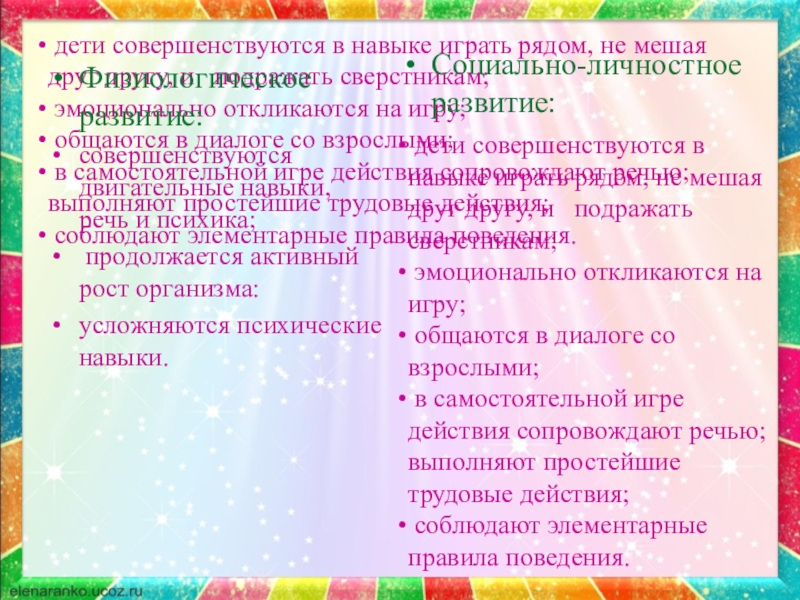 дети совершенствуются в навыке играть рядом, не мешая друг другу, и подражать сверстникам;