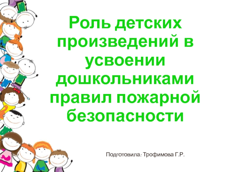 Слайд 1Роль детских произведений в усвоении дошкольниками правил пожарной безопасности